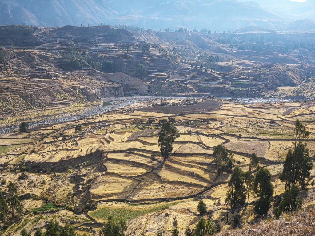 We departed Chivay for the Colca Canyon which descends more than 10,000 feet and is the deepest canyon in the world. Despite low agricultural prices which make farming unprofitable, people still cultivate some of the canyon’s many terraced fields.