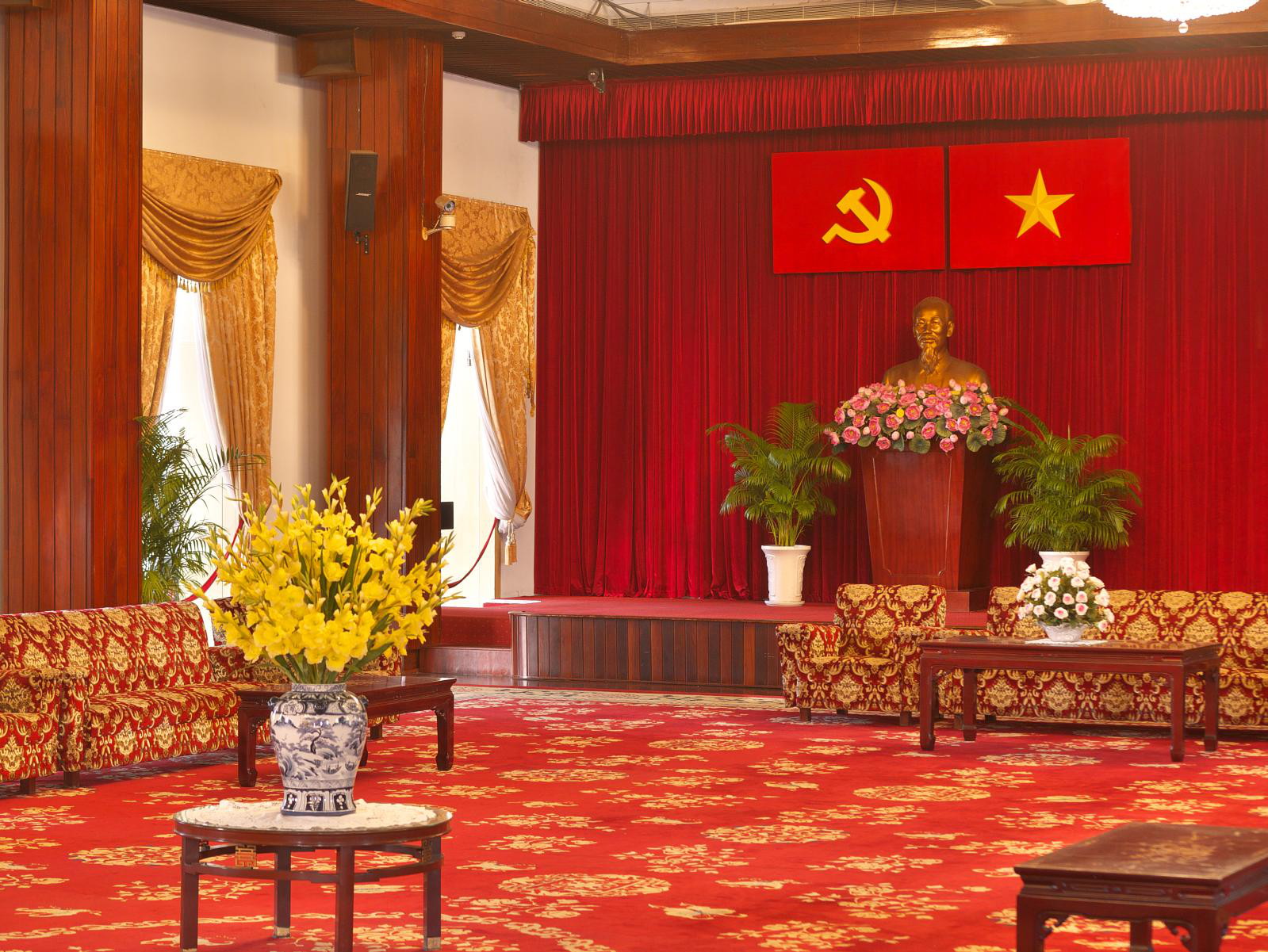 Day 2 we were off to South Vietnam’s Presidential Palace, now a museum called Independence Palace. On the way we stopped for a snack of fresh snails at one of a great many streetside stalls and visited a lovely market. Independence Palace has quite a history, having often been attacked and bombed over the years, but the final assault came in 1975 when Tank 390 crashed through its front gates. The Palace is a spectacular, modern, open building preserved much as it was with minor additions of a Ho Chi Minh statue and hammer & sickle flag.