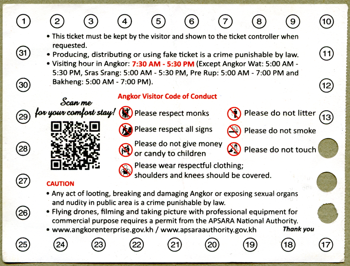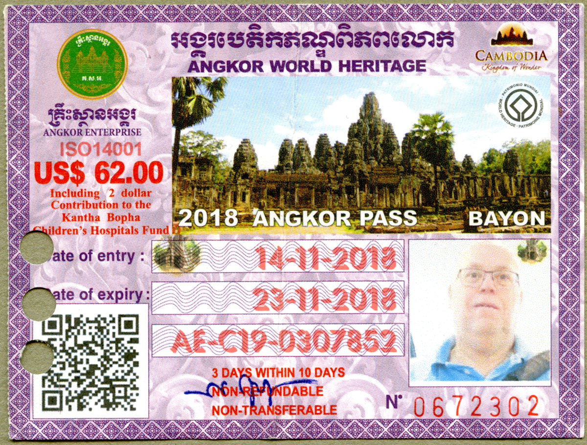 Sure enough, dark and early with a packed hotel breakfast, we headed off in the cool morning air to purchase tickets for the Angkor Archaeological Park, US$62 for three days access to all the sites. The ticket centre is a large modern building reminiscent of an airport terminal. We somehow avoided any lineups and were soon on our way.