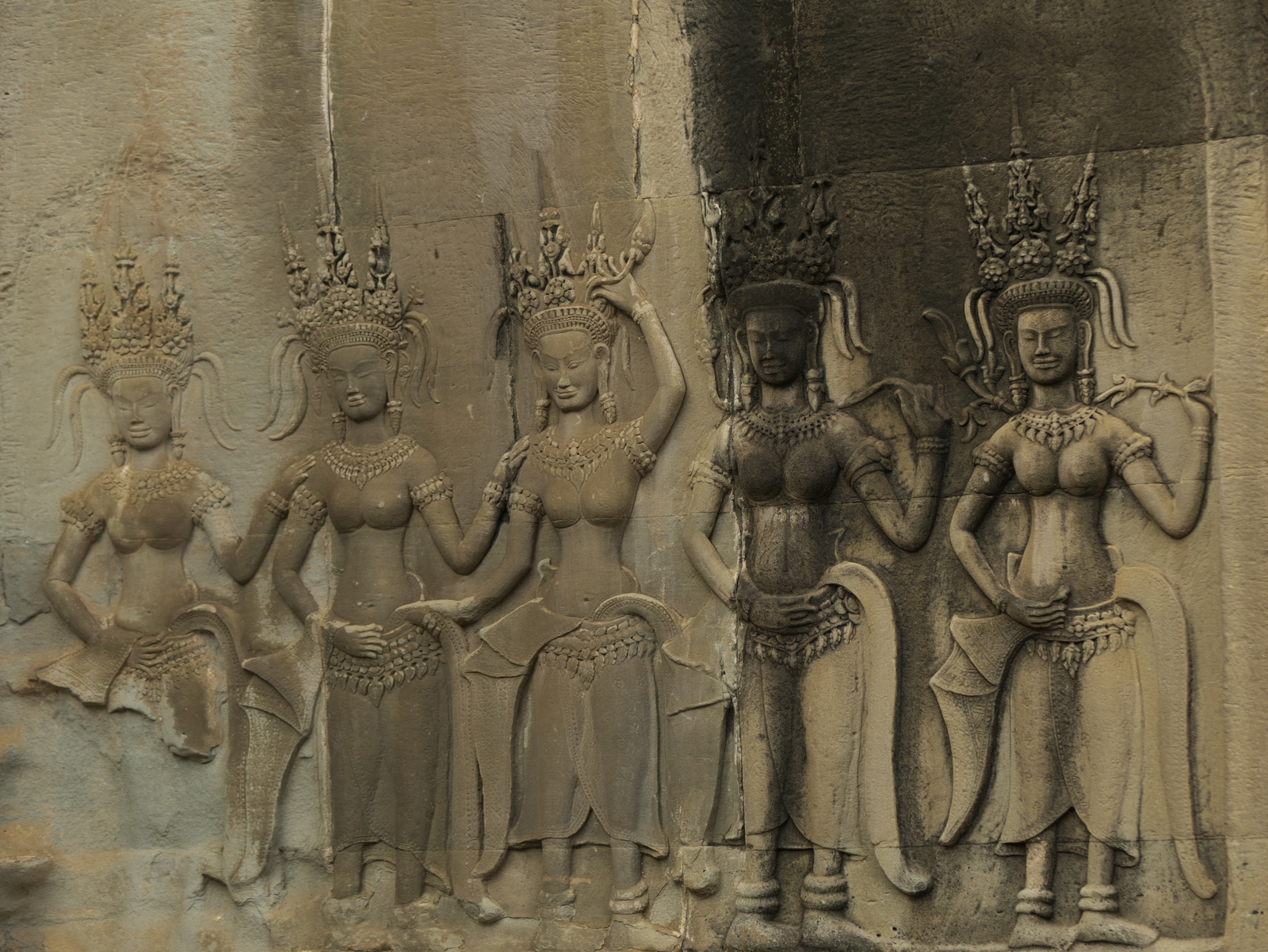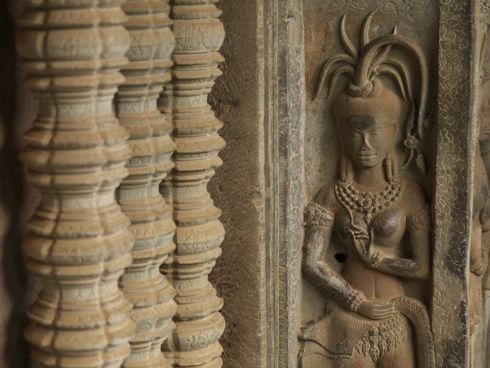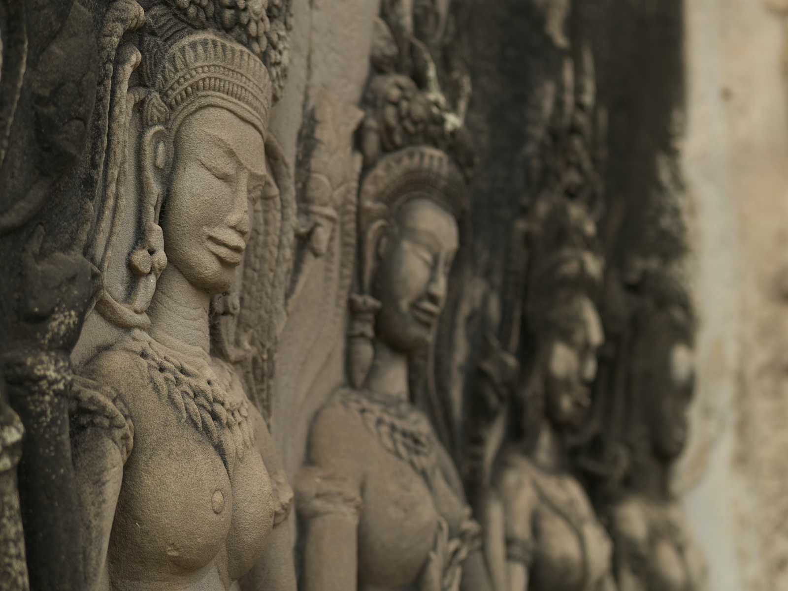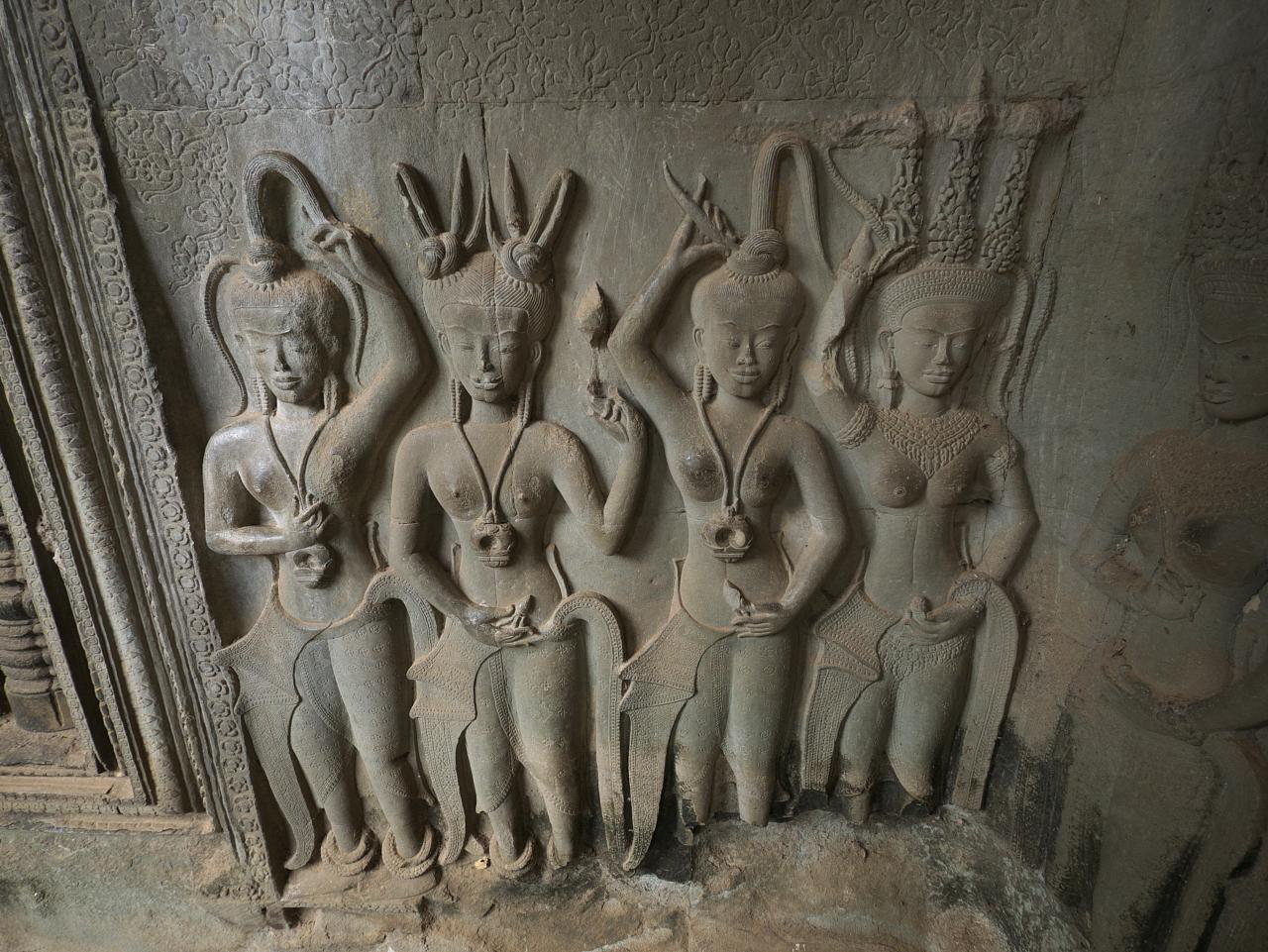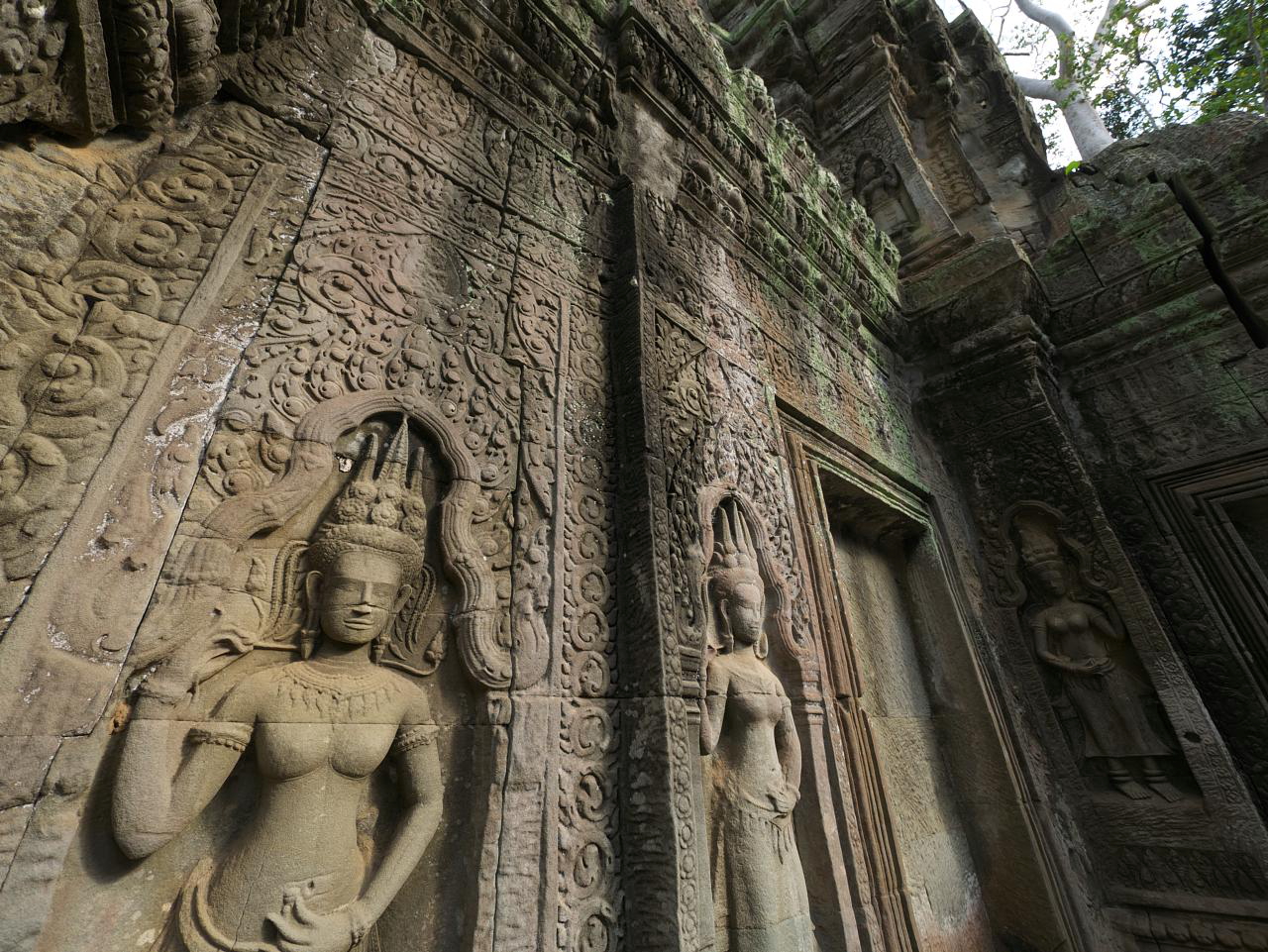 Day 2 started with a visit to Elephant Terrace, also part of Angkor Thom. We were eager to see it and were not disappointed. The terrace wall is 2.5 metres high and 300 metres long, adorned with carved elephants and mythical flying guardians called garudas. Its platform was used to review victorious armies. From there we entered the temple complex for more exploration.