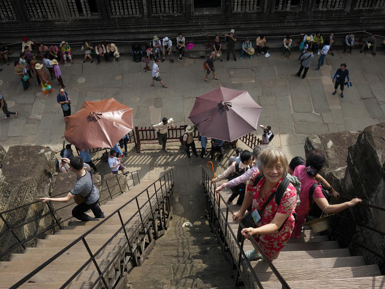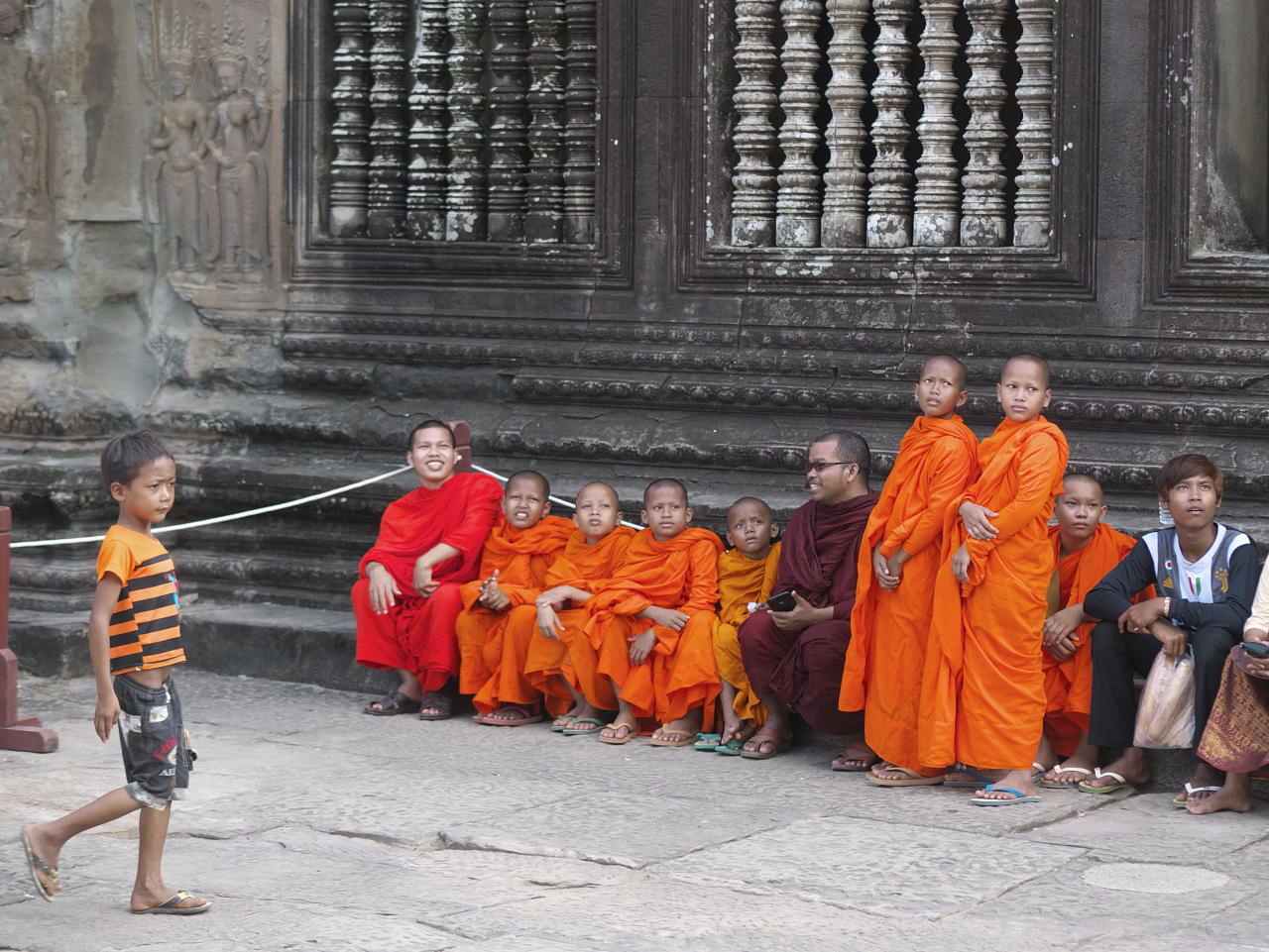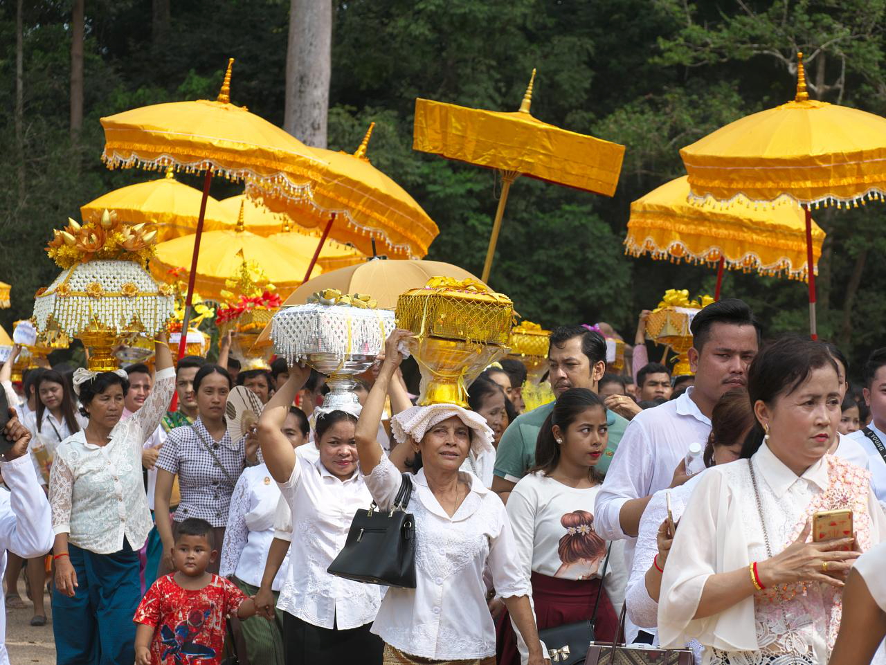 Next up was Bayon, famous for the huge enigmatic heads atop its towers and the main temple of the 9-sq-km Angkor Thom. As we were leaving, a religious procession passed by — lots of colour and noise and we have no idea what it was about.