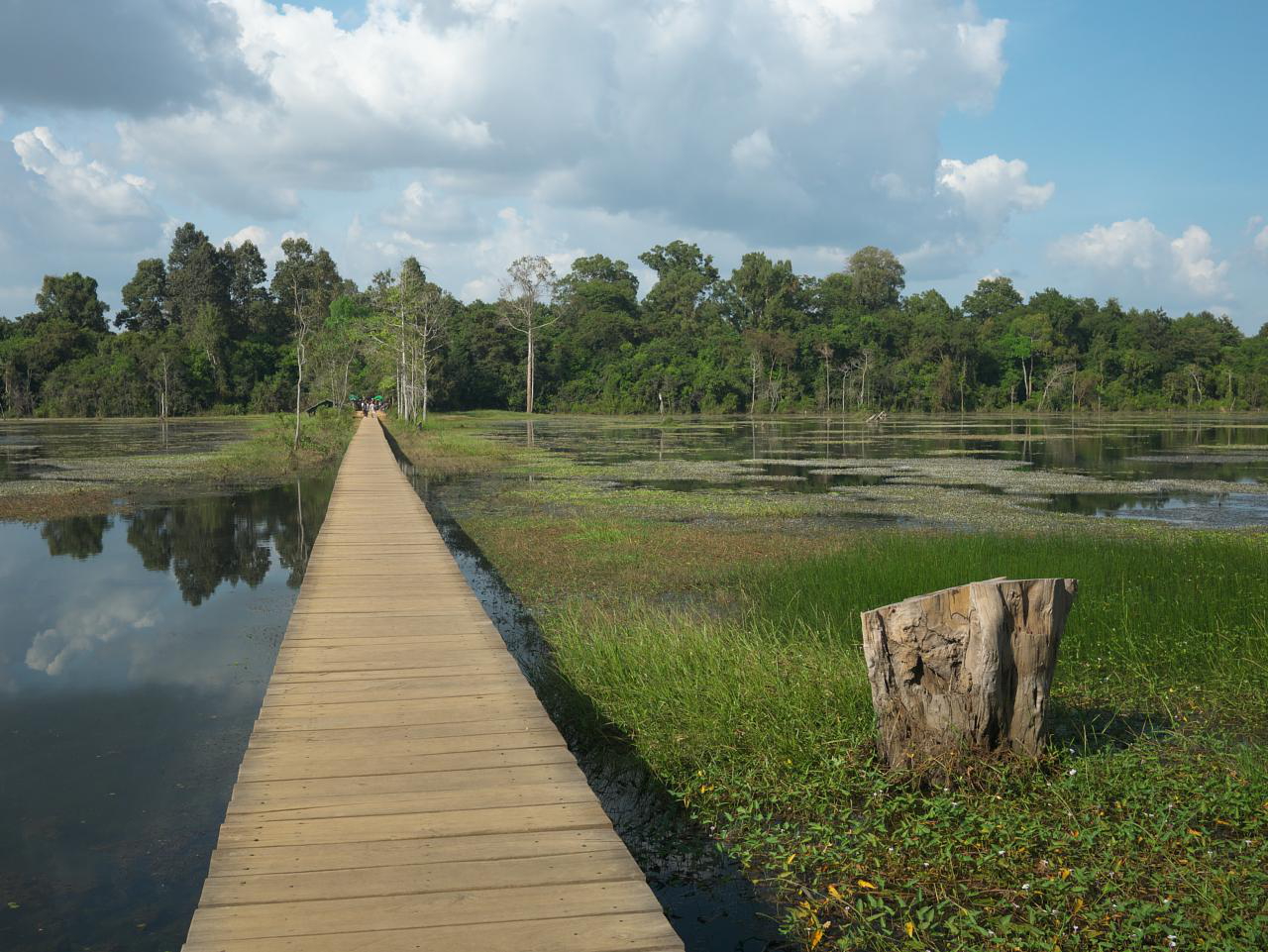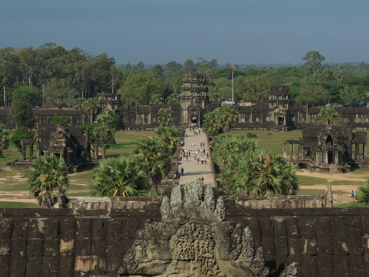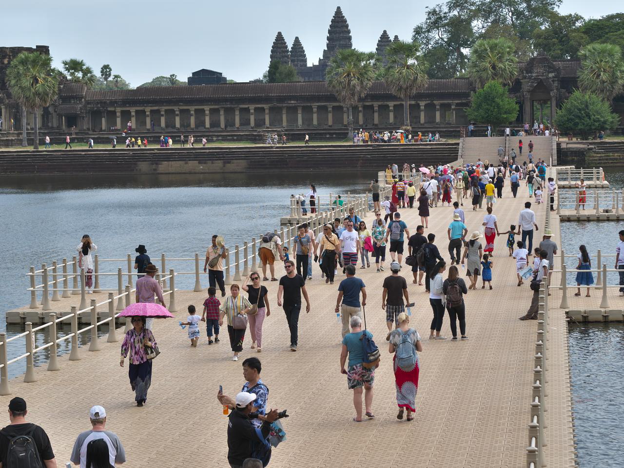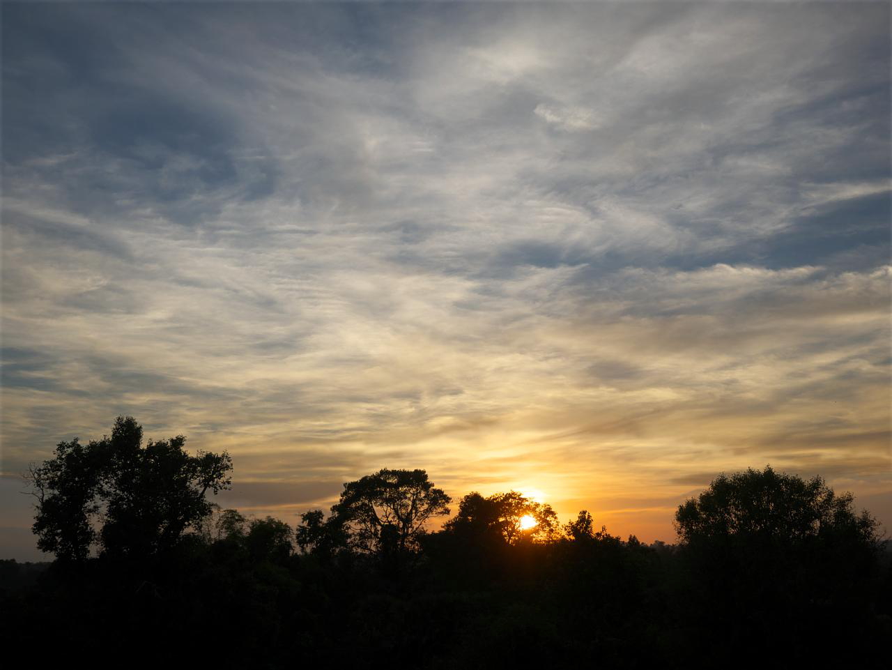 It was a short drive to the Angkor Wat parking lot and we joined the silent throngs stumbling along in the dark toward the sunrise viewing area. It was an odd procession and after standing around for almost an hour at the edge of a small lake the sky brightened and the show was over. There was a bit of haze so we never saw the sun but can confidently state that it did rise.