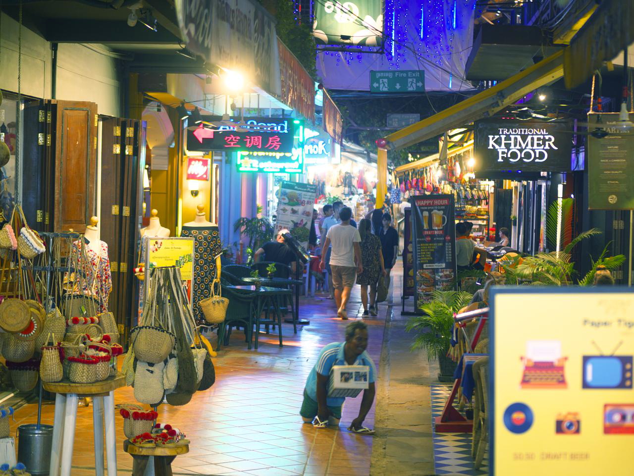 It was getting dark and we rejoined the mother ship for a visit to a crocodile farm and then a quick trip into Tonle Sap, the largest freshwater lake in Southeast Asia which is being destroyed by Chinese dams much further up the Mekong river. We headed back in the dark placing much faith in our young pilot. It was a long, dark tuk-tuk ride back to Siem Reap’s Old Market for a date with a money changer and dinner at Viva Mexican Restaurant which claims “The best Mexican food in Asia.” Lots of variety including Italian and Cambodian. We enjoyed it.