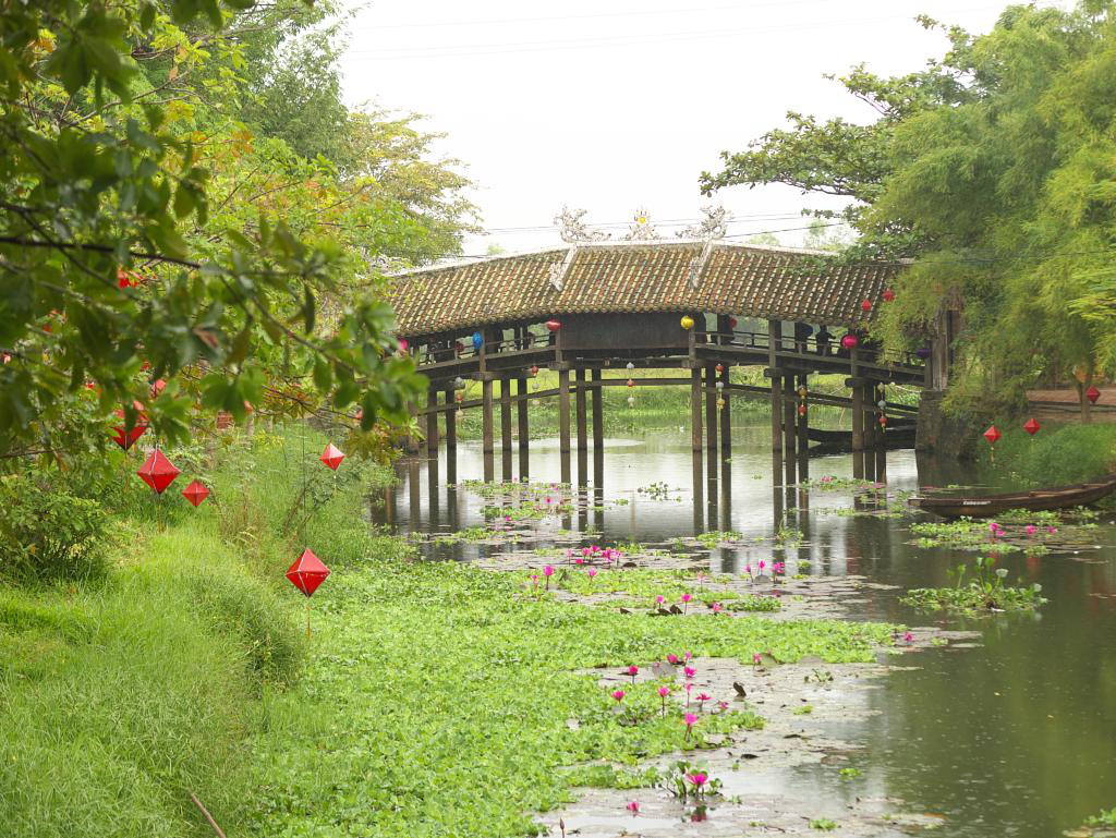 Our ten dollar, 135 km trip from Hue south to Hoi An was by tour bus. It stopped several times along the way and was a good introduction to the area. First up was the Thanh Toan Japanese Bridge in a small market village about 7 km from Hue.