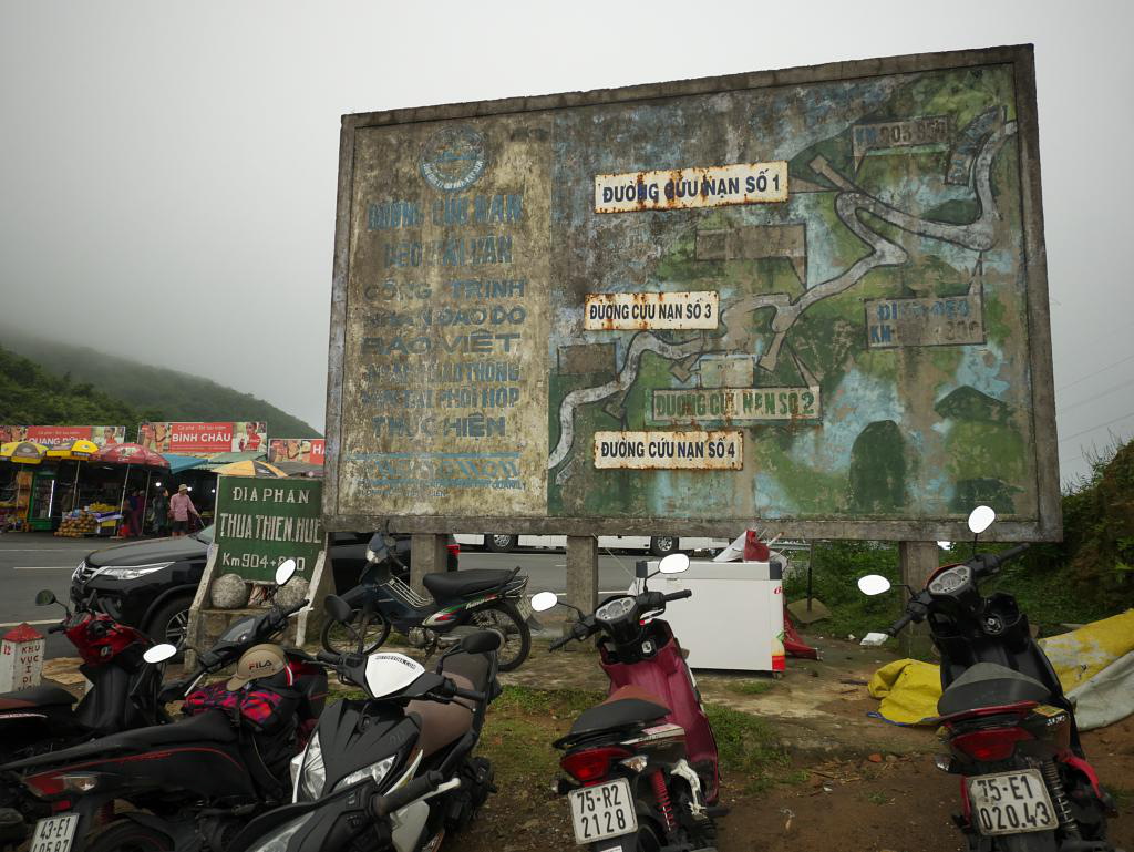 We headed south past endless beaches and fields, with wartime bunkers jutting out of flooded rice paddies. Then it was a climb from sea level up the 21 km Hai Van Pass to the wonderful sweeping views over the East Vietnam (aka South China) Sea from its 1500 ft. summit. Hai Van is a strategic choke point between north and south Vietnam and is the site of military fortifications since ancient times. We had about 45 minutes to explore the area. The steep pass is a favourite for motorcyclists and if I was younger, braver and knew how to ride a motorbike I’d want to give it a try.