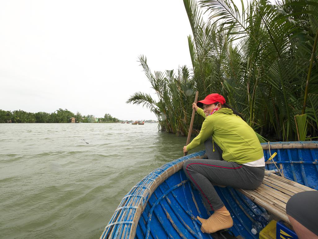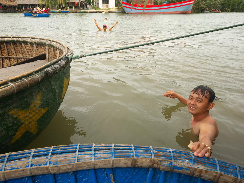 Our hosts helped us to book the tour and next morning we headed out by scooter to Coconut Village and a basket-boat ‘eco-tour’ of the area. The wind caught us while rounding a corner in the reeds and, while grabbing for her hat, my wife managed to fling her phone into the water. Our young guide stopped the boat immediately and asked some young men swimming nearby to look for it. Miraculously, after about 10 minutes of diving down and feeling around, one of them emerged with her Android G8 in hand. And it still worked! Amazing! We gave them a good (unsolicited) tip and everyone went away happy. I should emphasize: they helped us very enthusiastically and out of kindness. Nice people. It was a good experience.