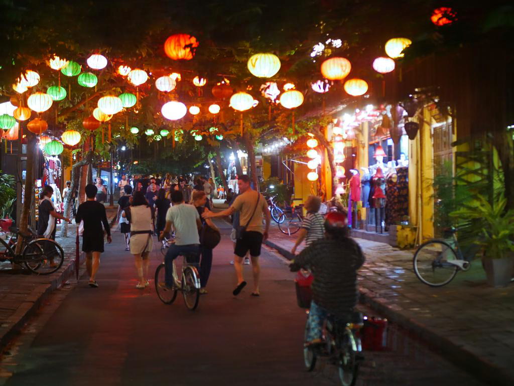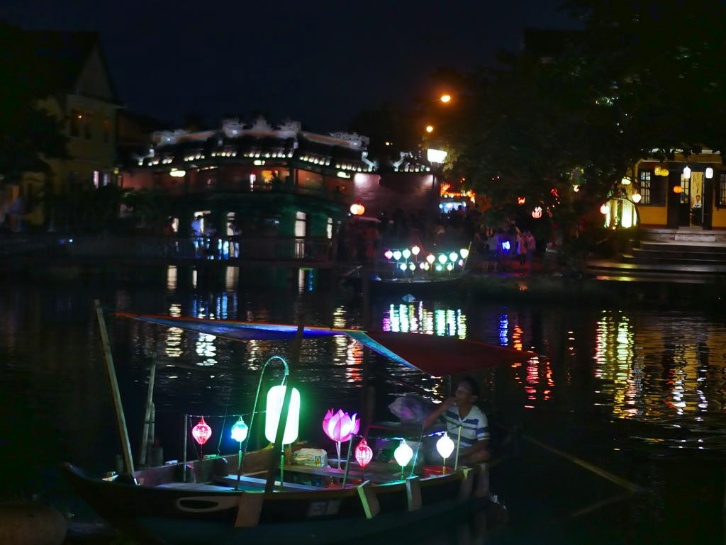 Hoi An is a tourist town with a Unesco designated old town area — which we never did see — plus narrow cobbled streets and an extensive night market. The inner harbour lights up at night with dozens of lantern-lit boats lit waiting to take you out. A lovely place but thoroughly touristic.