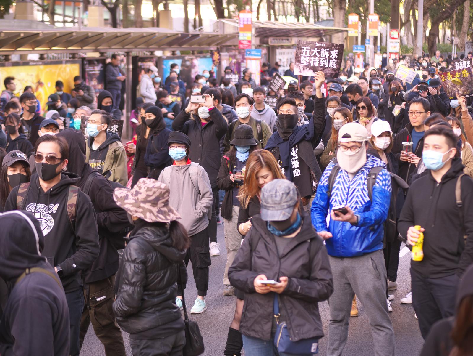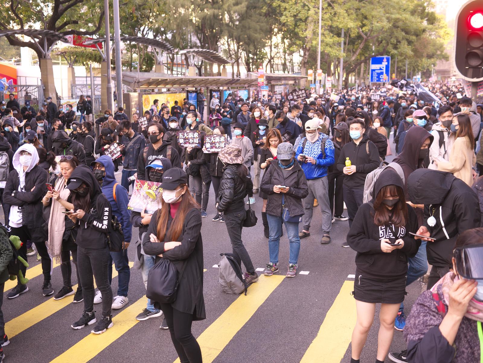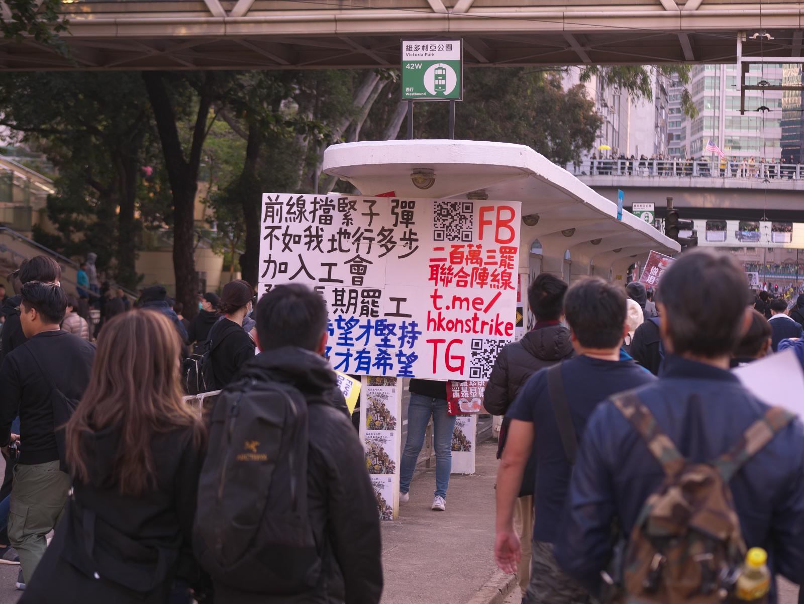 Five stops later, we got off at Tin Hau station just east of Victoria Park on Hong Kong Island. On the train we met a young couple who filled us in on what to expect, told us to keep escape routes in mind and insisted on giving us a bottle of water in case we encountered tear gas or pepper spray. As this was an approved march, there was a lot of optimism that things might go well. As it happened, we didn’t see a single police officer at the march.