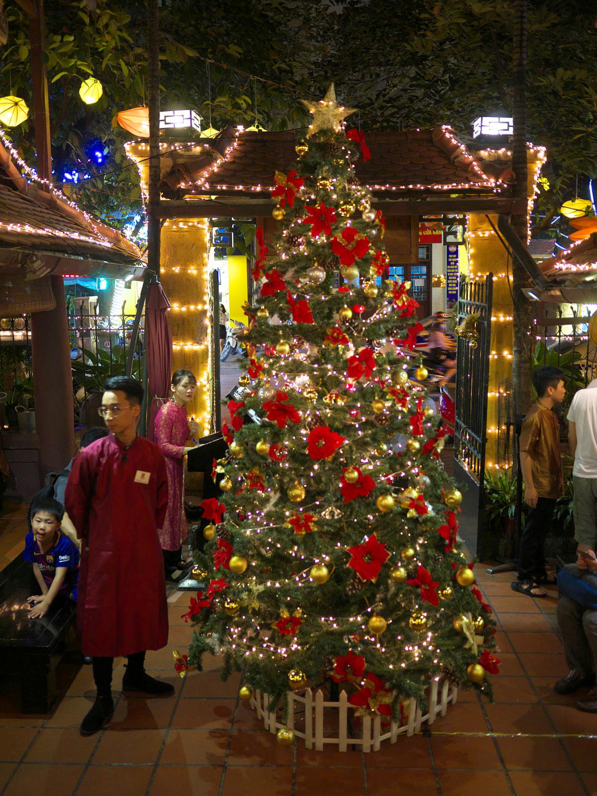 One restaurant stood out, the large Quan An Ngon, partially indoors, partially outside but fully covered and worth a visit. Great variety of good food and a nice atmosphere. Even a Christmas tree.