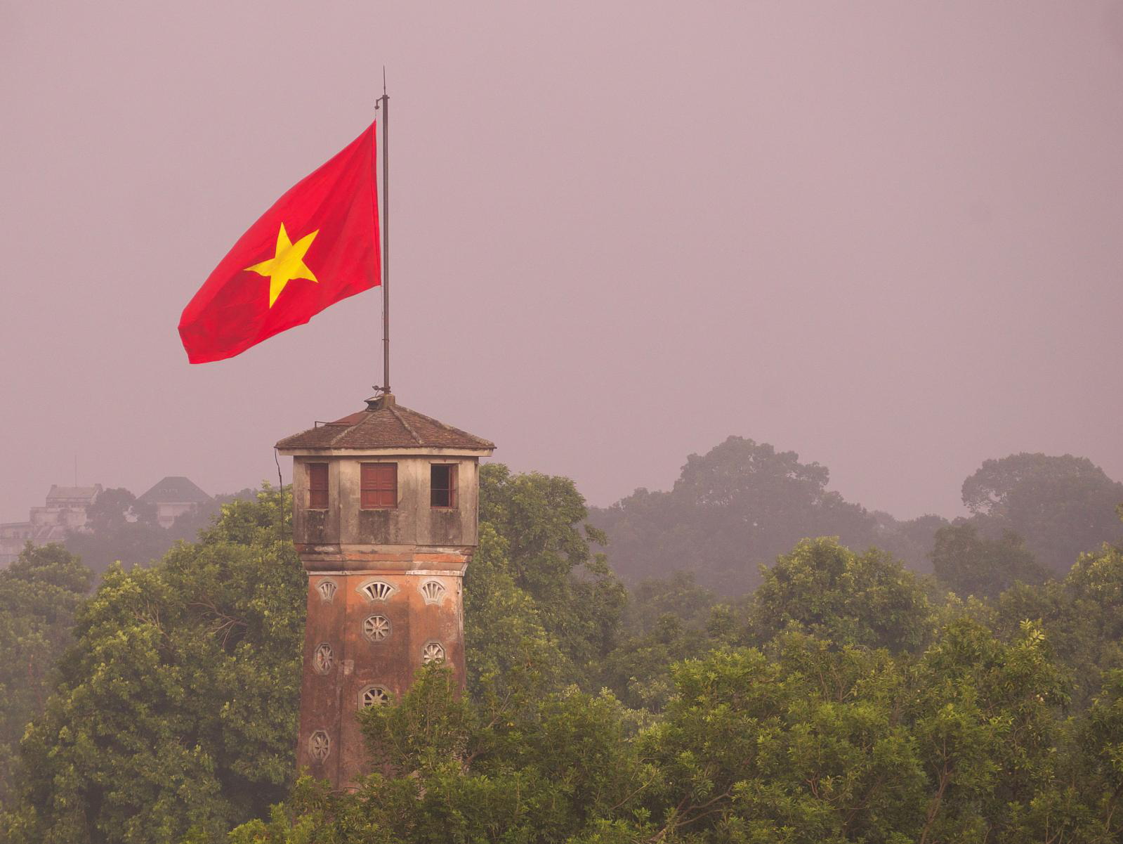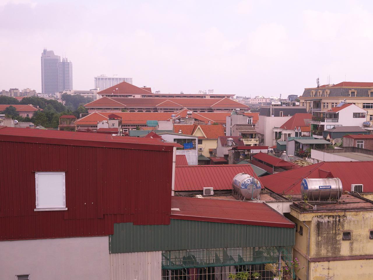 Our hotel roof gave a view of the triangular peaks of army headquarters a few blocks away. Officers had paid the hotel a visit and ordered them to cease work on their rooftop spa. No discussion, the hotel complied. From its roof: