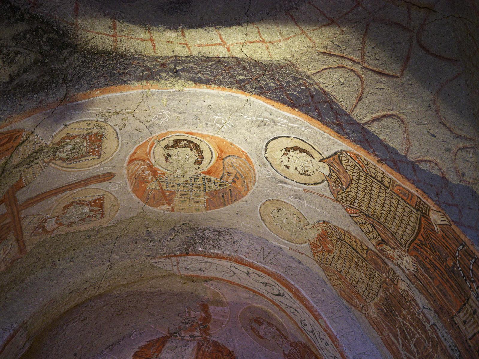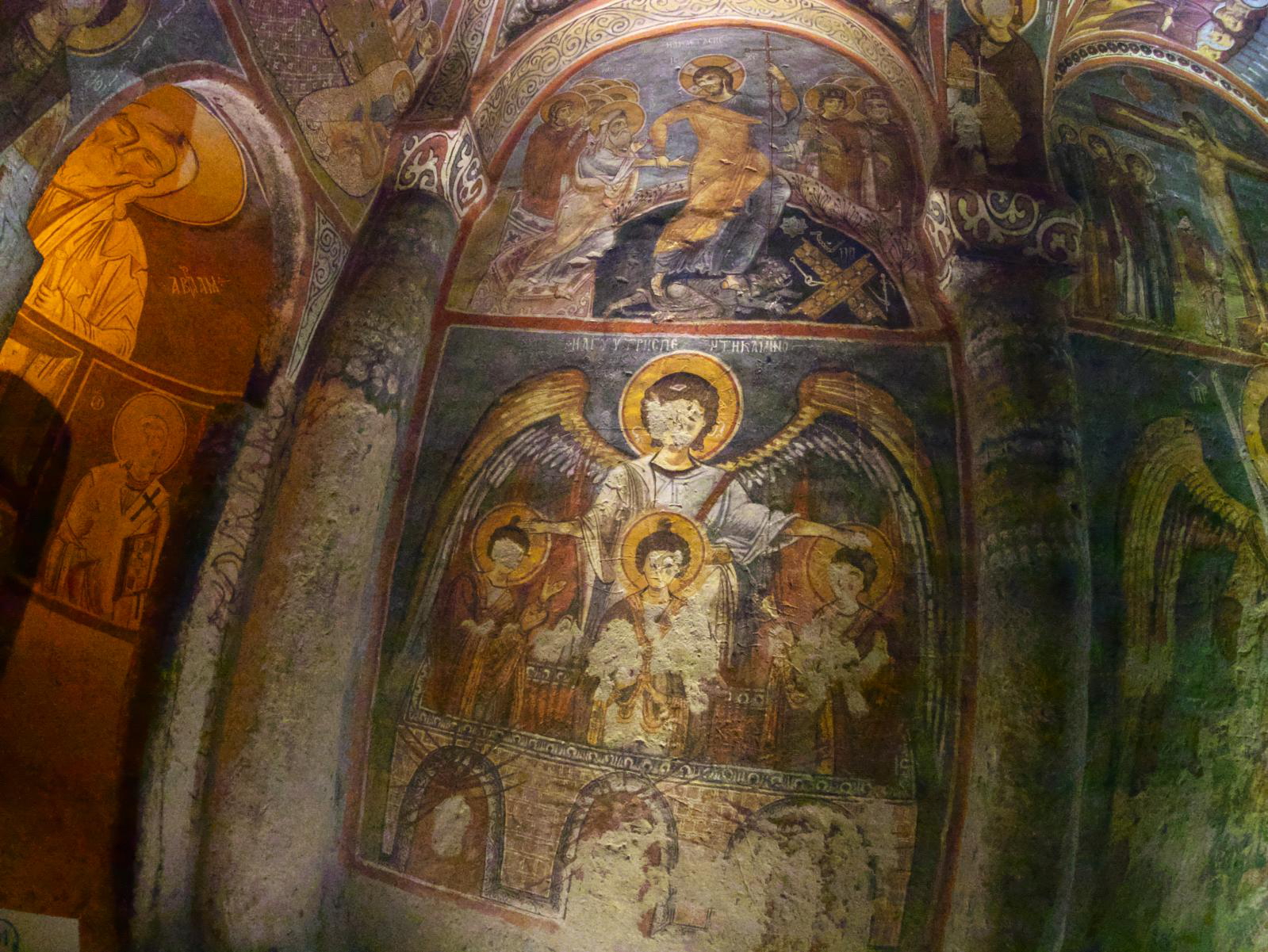 We headed off for the Goreme Open Air Museum, a concentrated site with numerous rock-hewn churches and monastic buildings about 2 km from Goreme village. (Admission US$3.50) Many of the frescoes are intact although, especially in areas within easy reach, the faces of Christ and the Saints are often scratched off due to 20th century Islamic zeal.