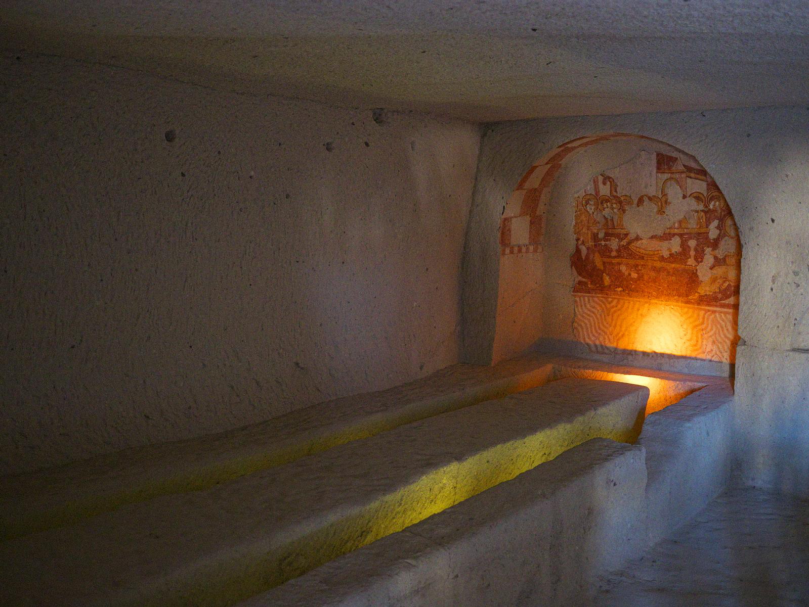 “During the Roman period, persecuted Christians fled in droves to Goreme, a town in Cappadocia. There, they learned that the soft tuff could easily be excavated and built homes and churches in the chimneys. They expanded ancient caves into underground cities like Kaymakli and Derinkuyu — massive refuges that could shelter thousands.”