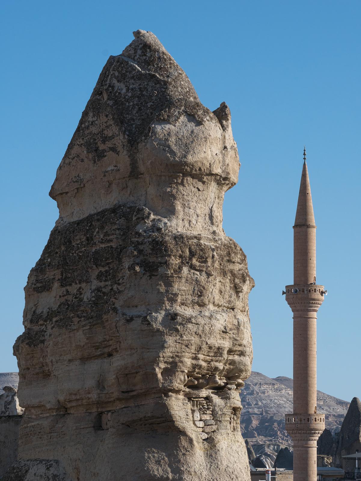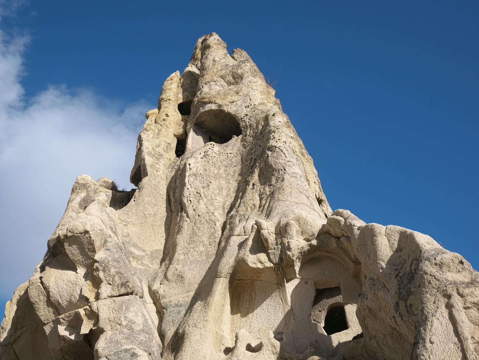 Here’s how The Smithsonian explains Cappadocia’s extraordinary landscape: “The chimneys are a result of a geologic process that began millions of years ago, when volcanic eruptions rained ash across what would eventually become Turkey. That ash hardened into tuff, a porous rock, which was covered by a layer of basalt. Finally, the long work of erosion began. As millennia passed, the softer tuff wore down, giving way to pillars that stand as tall as 130 feet. The harder basalt erodes more slowly, forming a protective, mushroom-shaped cap over each one.