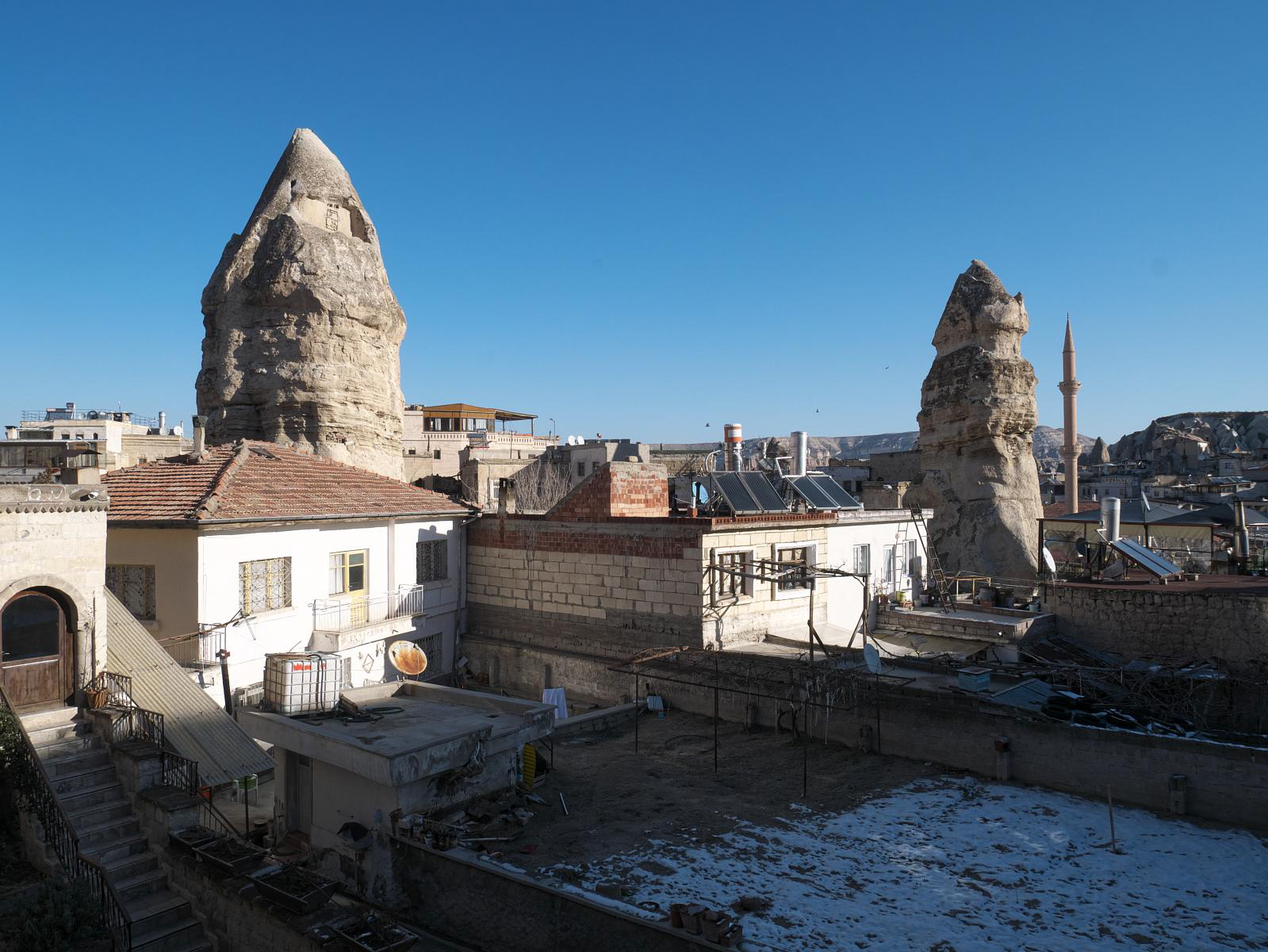 After a snowy Christmas in Ankara, our first destination was Goreme, a silk road village in the Cappadocia region of central Anatolia. We hired a car for the 3-1/2 hour drive and booked rooms at the US$70/night Erenby Cave Hotel, one of many hotels in the region that are carved into cliffs and ‘fairy chimneys.’ Cappadocia tends to be a fairly expensive destination but there are many accommodation options from hostels to 5 star and we were happy with our choice: nice people, good clean cave rooms, reasonable price, central location and a great Turkish breakfast with home-made preserves.