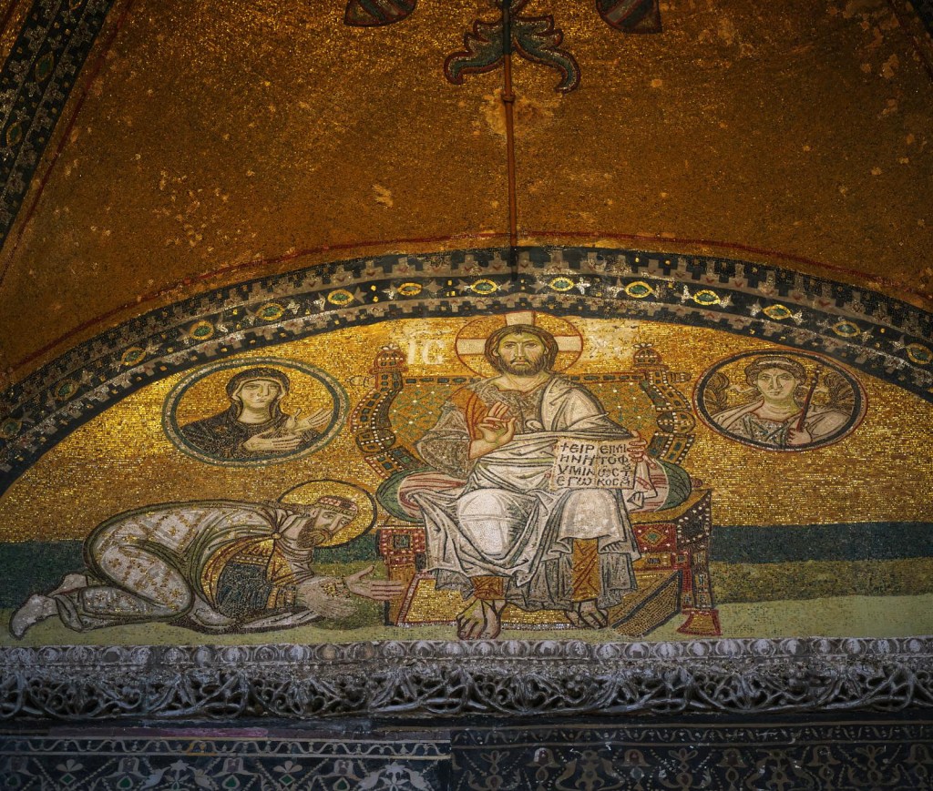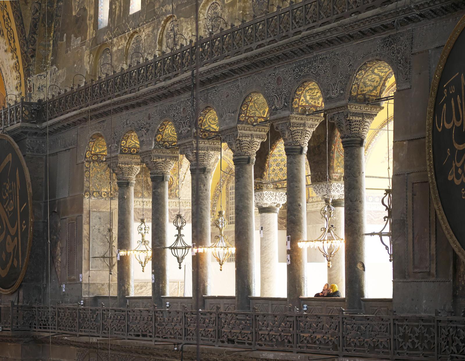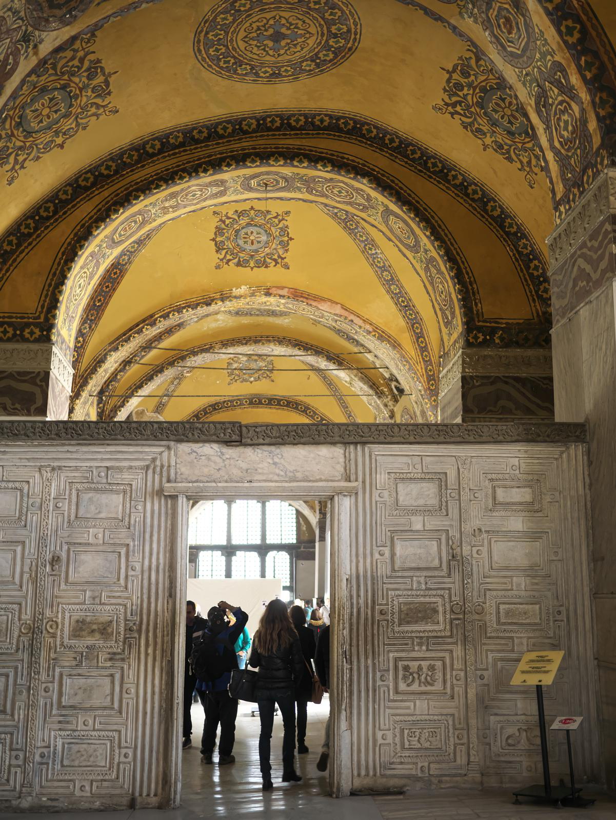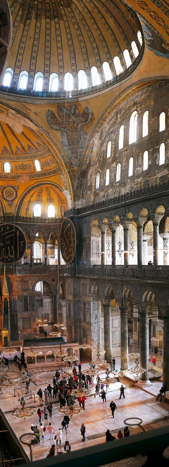 In 1203-1204, Hagia Sophia was looted by Roman Catholic Crusaders who stole its gold and silver ornaments and desecrated the space. A woman ‘laden with sin’ sang and danced on the altar which was smashed. Mules were brought into the sanctuary to carry away gilded silver plate, doors and furnishings. One of the animals slipped on the church’s marble floor and was disemboweled. The sacking of Hagia Sophia and of Constantinople remains a sore point in Catholic–Orthodox relations. As I said, a fabled place.