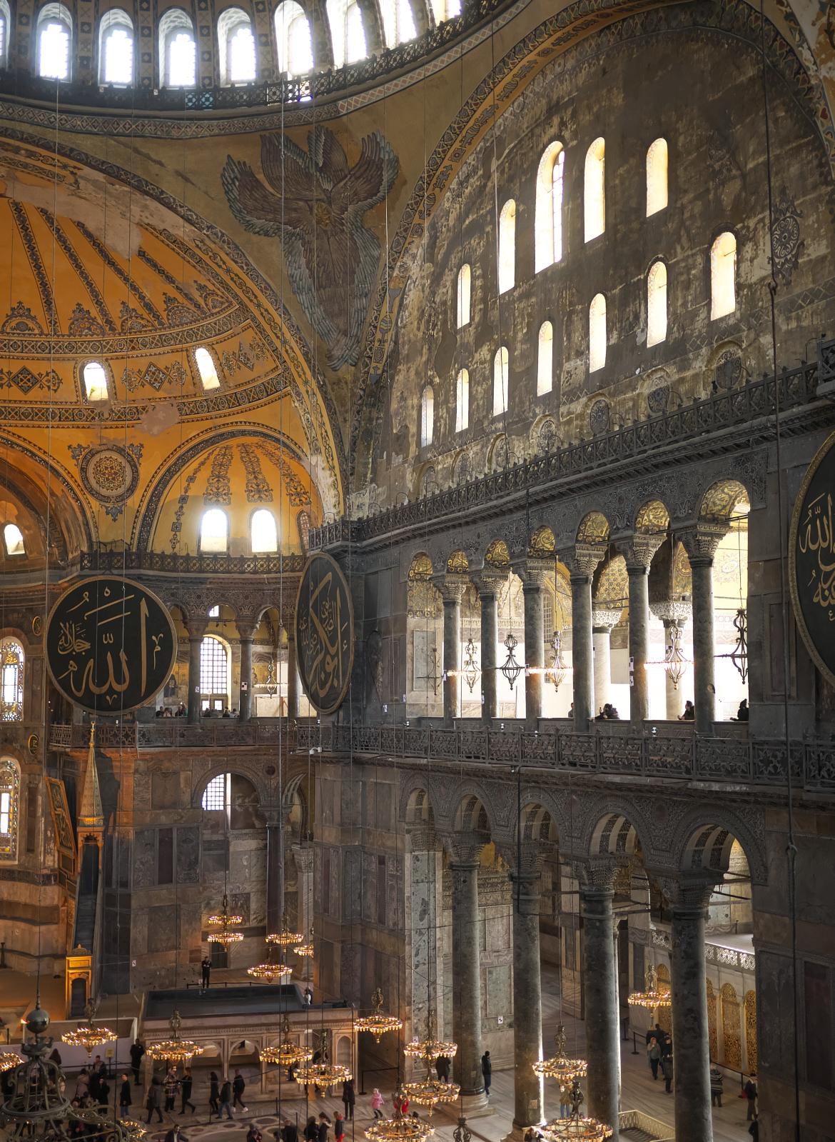 For many centuries, Hagia Sophia was the largest interior space in the world and its 108 ft. light-filled dome, floating 180 ft. above the marble floor, is a marvel of Byzantine architectural innovation. The Ottomans appropriated Hagia Sophia’s design for their mosques and that tradition continues.