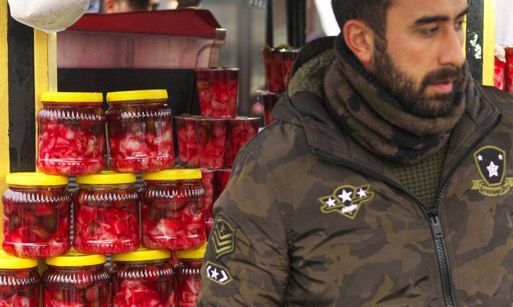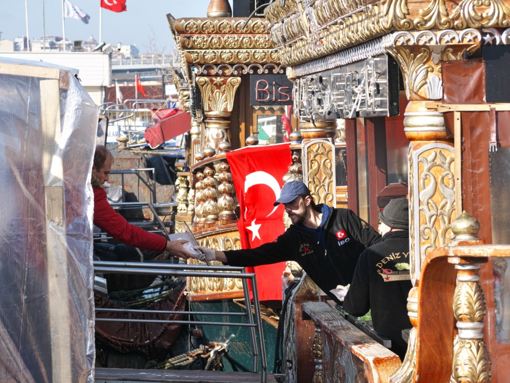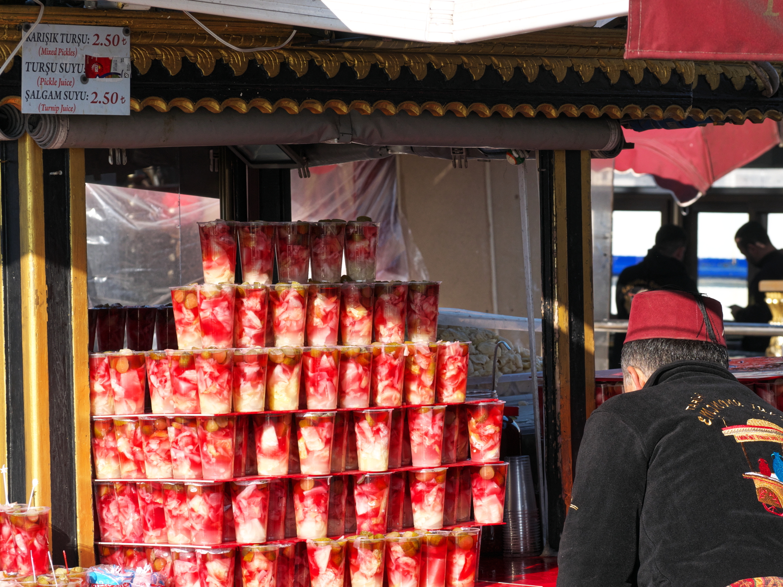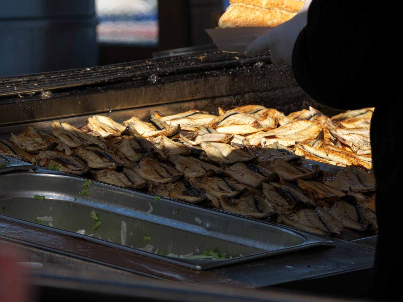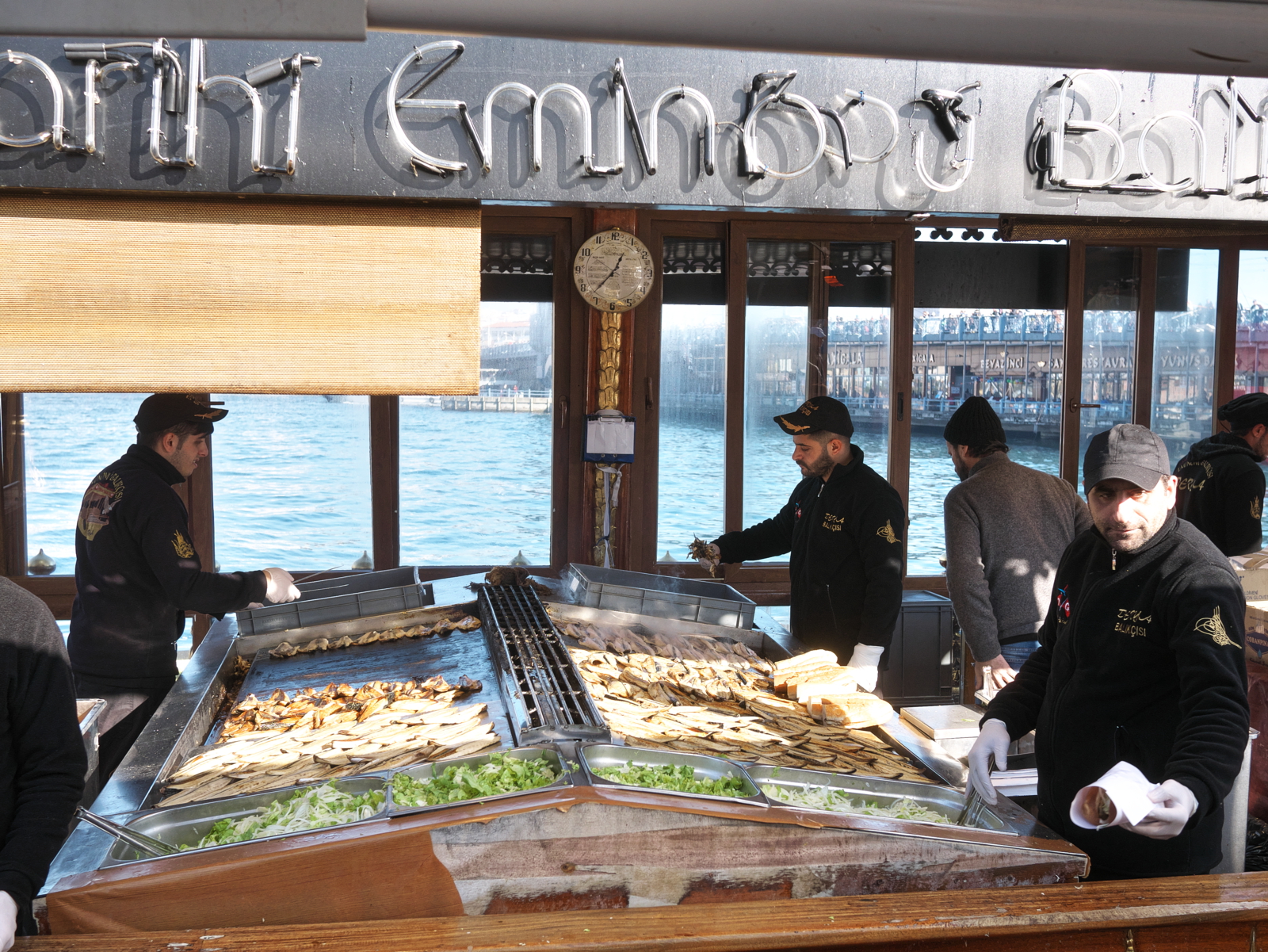 Our first stop was at Istanbul’s floating fish restaurants — Tarihi Eminönü Balık Ekmek — which had been an institution since the 1800s. They sold just one thing, fried fish sandwiches, and had many happy customers. You placed your order on shore and the food was passed over from the boat. Add sour pickles and a drink, find place to sit and enjoy. Sadly, the boats have been forced to close. No doubt you can still get corn and chestnuts.